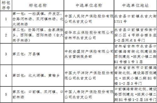 2023年永吉县地方优势特色农产品(肉牛)保险承保机构遴选项目已于2023年5月15日进行公开遴选。现将本次遴选结果公布如下: 1、评定成交结果的日期:2023年5月15日 2、遴选小组成员:陈晓松、苏泽民、何佰玲、臧革祥、孙利中。 3、中选单位名称及地址 4、成交内容:标包范围内的特色农产品(肉牛)保险。 5、服务标准:符合国家、省、市及行业标准。 6、服务期限:1年(2023年6月1日起至2024年5月31日)。 7、联系方式: 遴选单位:永吉县财政局、永吉县农业农村局 报名联系人:杨光普 联系电话:0432-63360157 以上成交结果公示期为5个工作日。如果本项目的参选人对成交结果有异议,请在公示期内,以书面方式向遴选人提出质疑。
